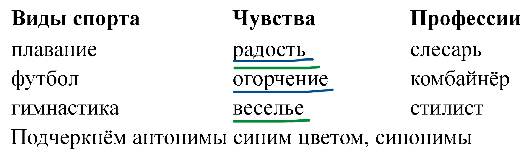 Подчеркни антонимы синим цветом, синонимы зелёным цветом.