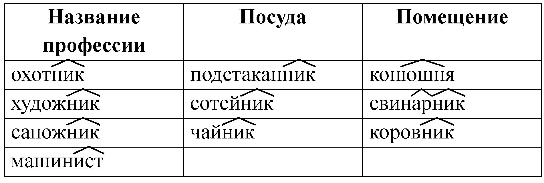Номер 1. Прочитай слова. Заполни таблицу. Выдели в словах суффиксы.