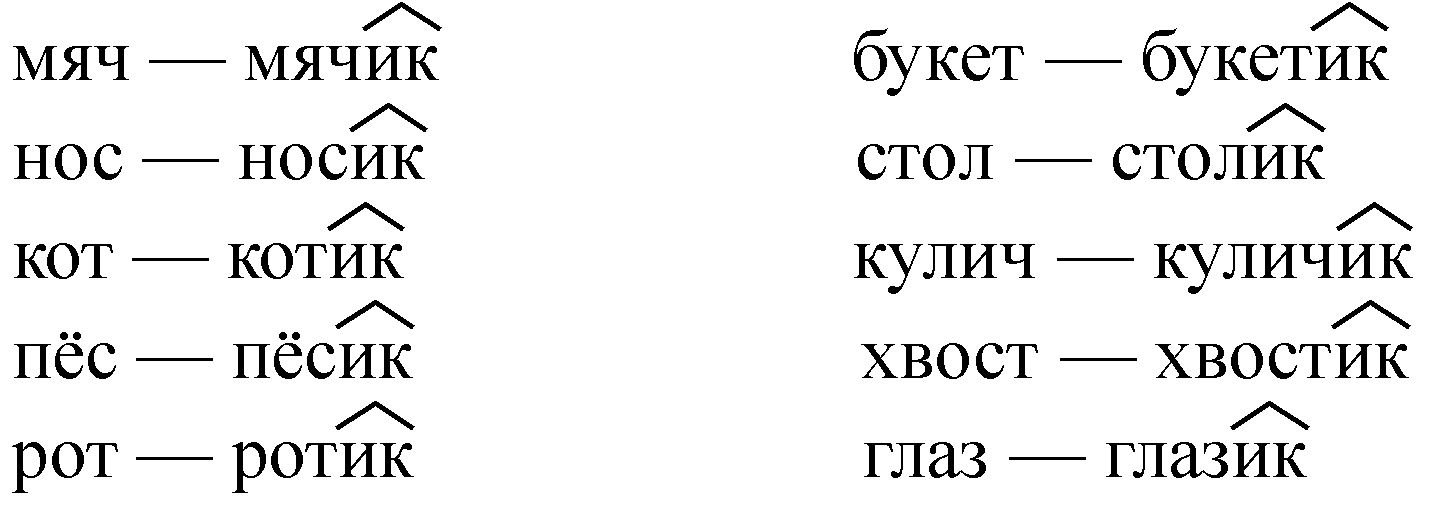 пятно — пятнышко бревно — брёвнышко