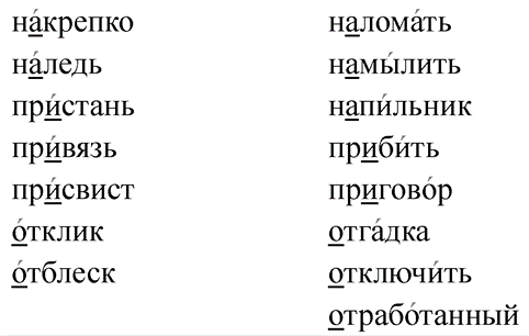второй с безударным. Обозначь ударение. Подчеркни буквы гласных в приставках.
