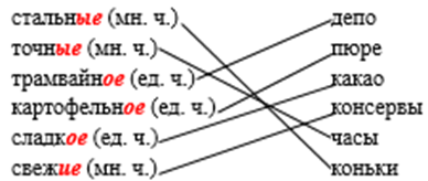 Соединим стрелками имена прилагательные с подходящими по смыслу именами существительными: