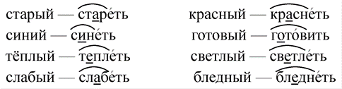 Номер 4. Образуй глаголы от данных имён прилагательных и запиши их в неопределённой