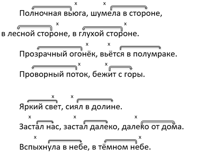1) Шумела полночная вьюга в лесной и глухой стороне.