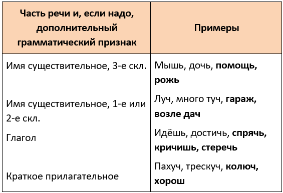 дочь, помощь, рожь Луч, много туч, гараж, возле дач Идёшь, достичь, спрячь,