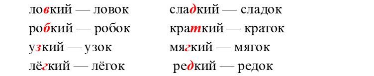 Образец: резкий — резок.