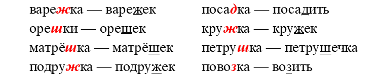 Детишки — дети; лошадка — лошади; короткие — коротко, укоротить; ножки — ножек; головка — головы; гладкая — гладок; шерсть — шерсти; взгляд — взгляды; малышка — маленький; бежит — бег; дорожке — дорожек; тележку — тележек; лёгкий — лёгок; бег — бегать; повозка — возить; круг — круги.
