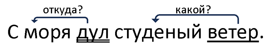II. Словосочетания: ветер (какой?) студеный, дул (откуда?) с моря.