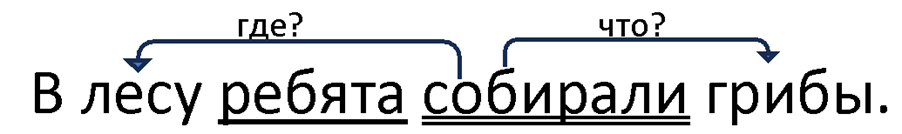 II. Словосочетания: собирали (где?) в лесу, собирали (что?) грибы.
