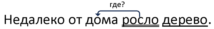 II. Словосочетание: росло (где? недалеко от чего?) недалеко от дома.