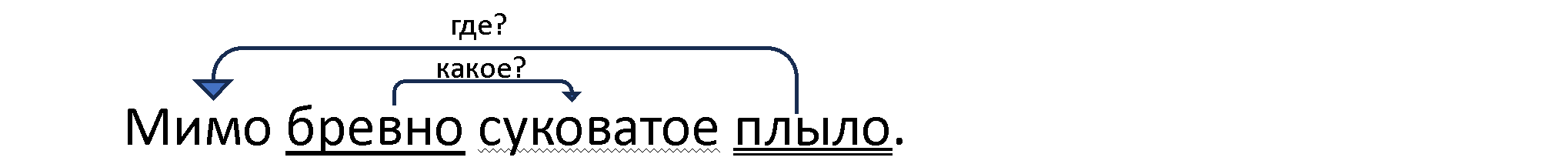 II. Словосочетания: бревно (какое?) сучковатое, плыло (где?) мимо.