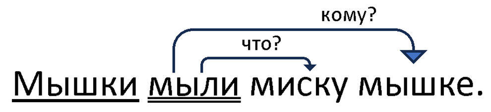 II. Словосочетания: мыли (что?) миску, мыли (кому?) мышке.