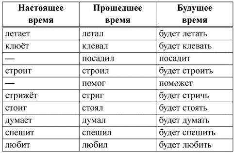 Номер 6. Образуй все возможные временные формы глаголов в 3-м лице единственном