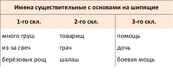 Какие существительные пишутся с ь на конце слова после шипящих?