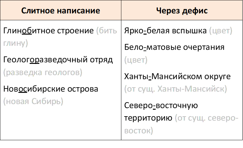 Распределим сложные прилагательные на два столбика.
