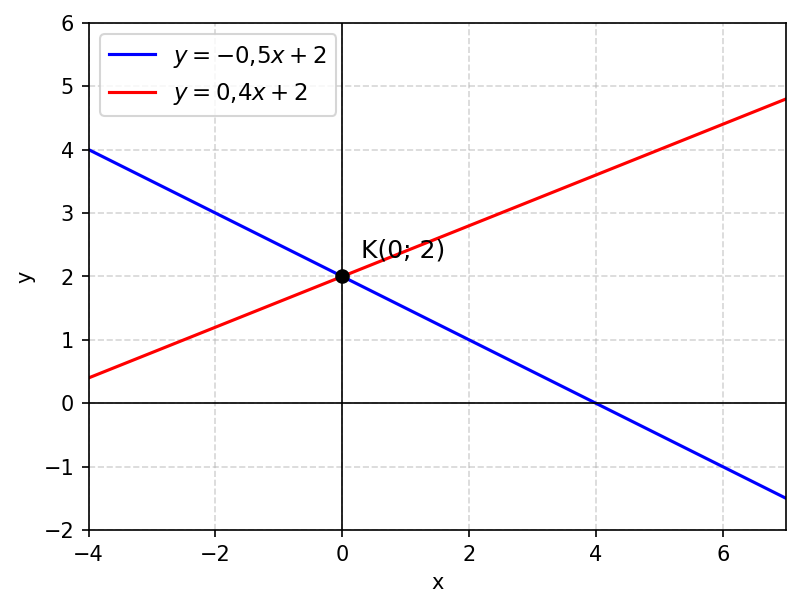 б) $\begin{cases} x + 2y = 4, \\ -2x + 5y = 10; \end{cases}$