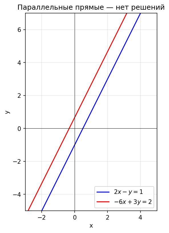 а) $\begin{cases} 2x - y = 1, \\ -6x + 3y = 2; \end{cases}$