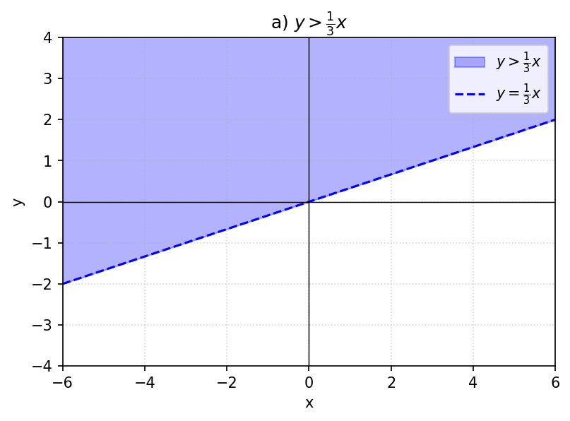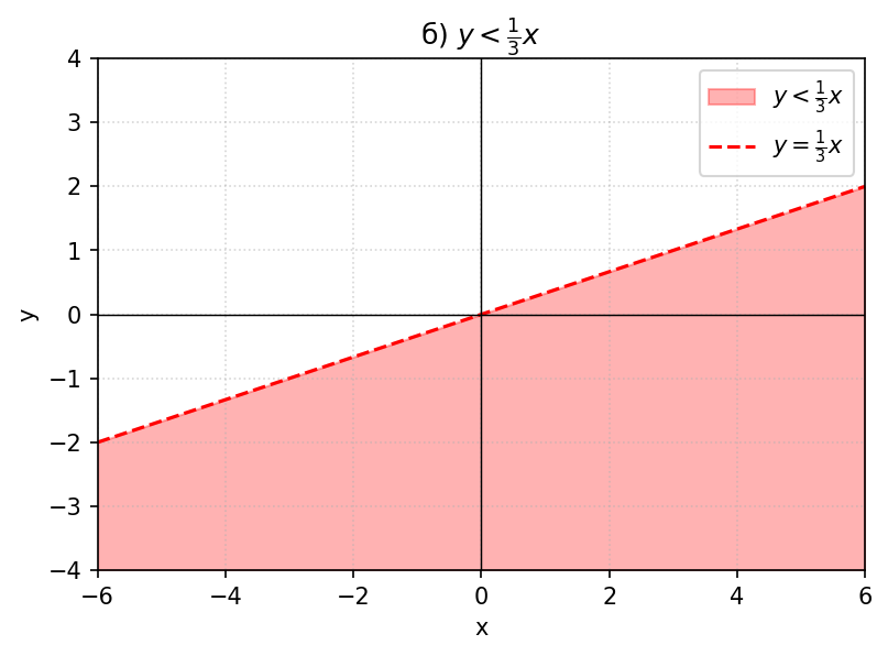 а) $y > \dfrac{1}{3}x$; б) $y < \dfrac{1}{3}x$.