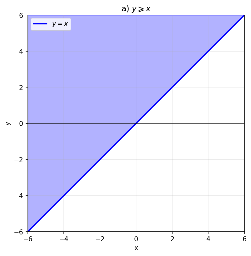 Проведём прямую (проходит через начало координат под углом 45°). Неравенство