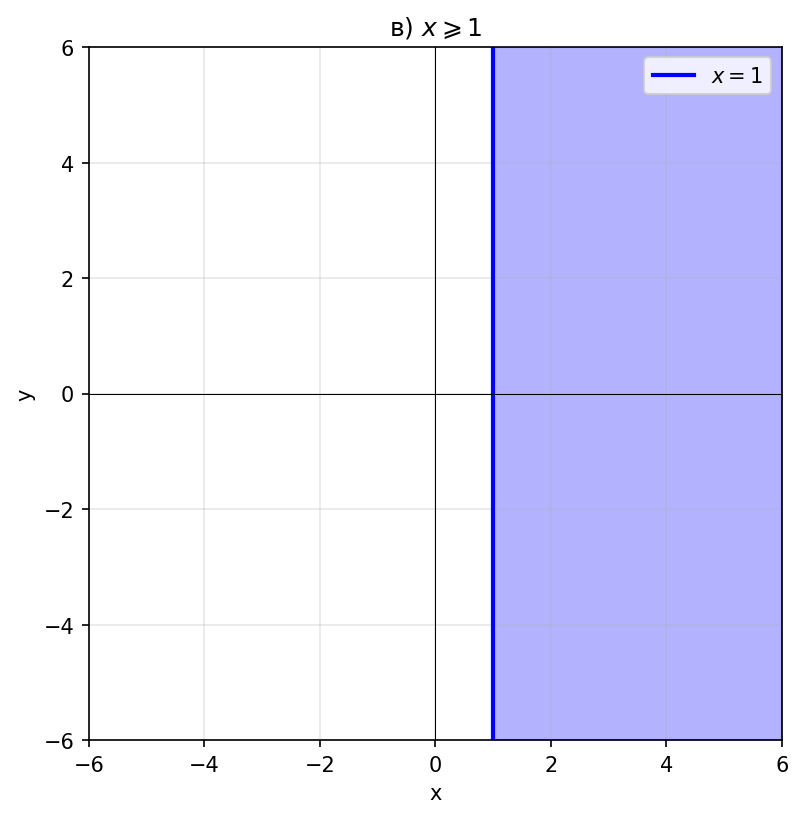 Проведём прямую . Абсцисса любой точки, принадлежащей этой прямой или расположенной правее её, равна 1 или больше 1. Значит, неравенство задаёт прямую