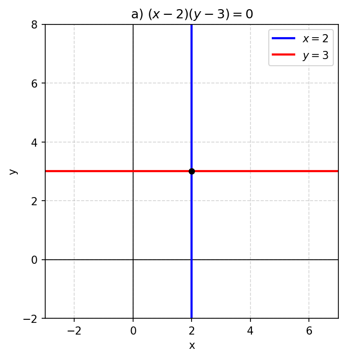 а) $(x - 2)(y - 3) = 0$;