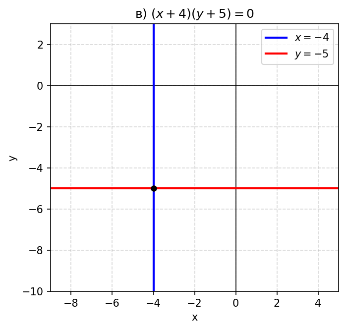 в) $(x + 4)(y + 5) = 0$;