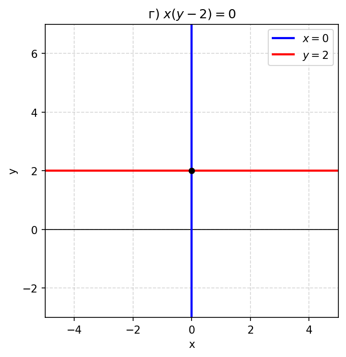 г) $x(y - 2) = 0$.