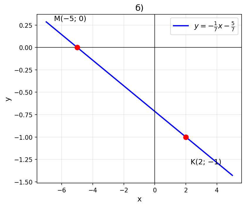 б) $M(-5; 0)$ и $K(2; -1)$.