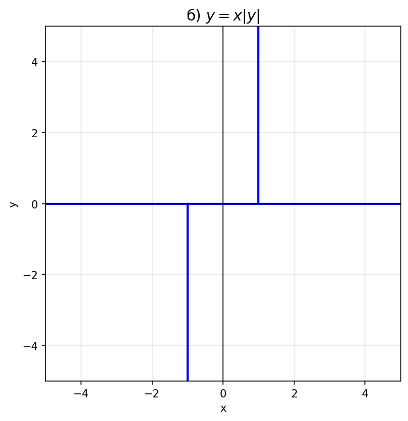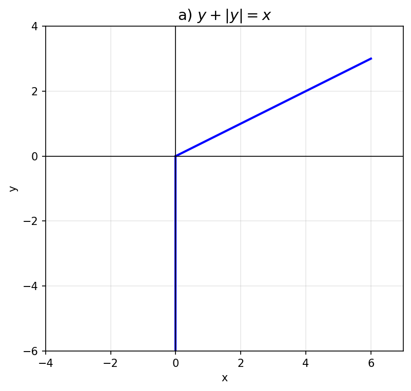 Условие: Постройте график уравнения: а) $y + |y| = x$; б) $y = x|y|$.