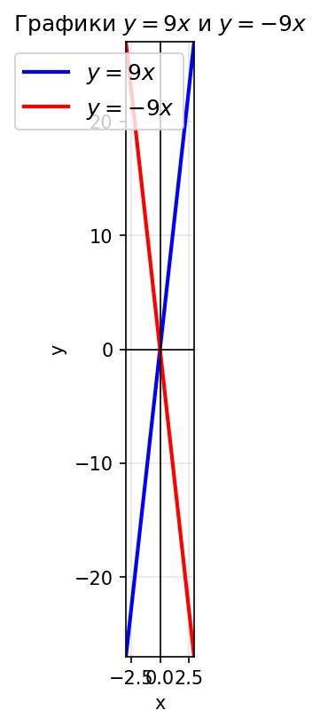Условие: *(Для работы в парах.)* Задайте формулой прямую пропорциональность, график которой симметричен графику функции $y = 9x$: