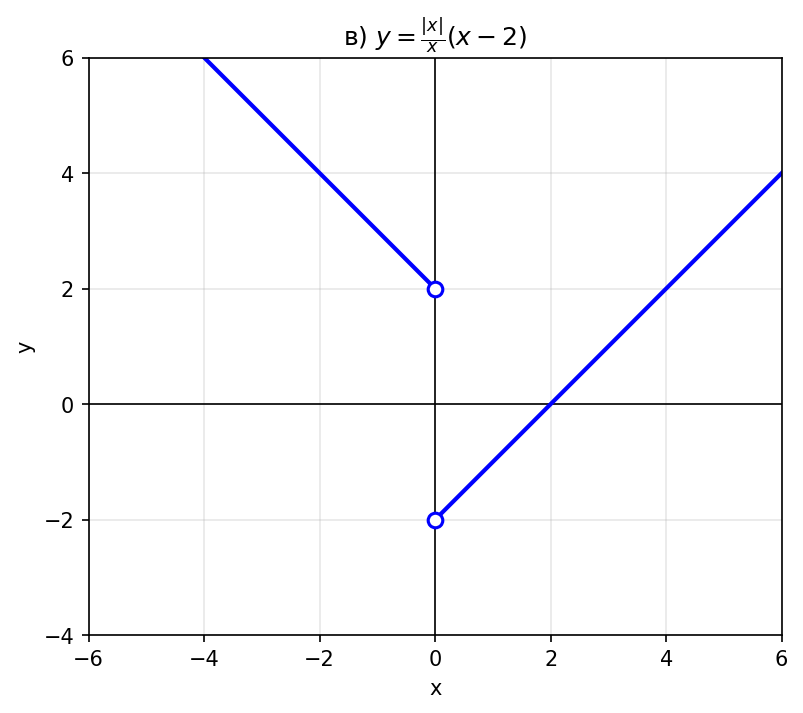 в) $y = \dfrac{|x|}{x}(x - 2)$.