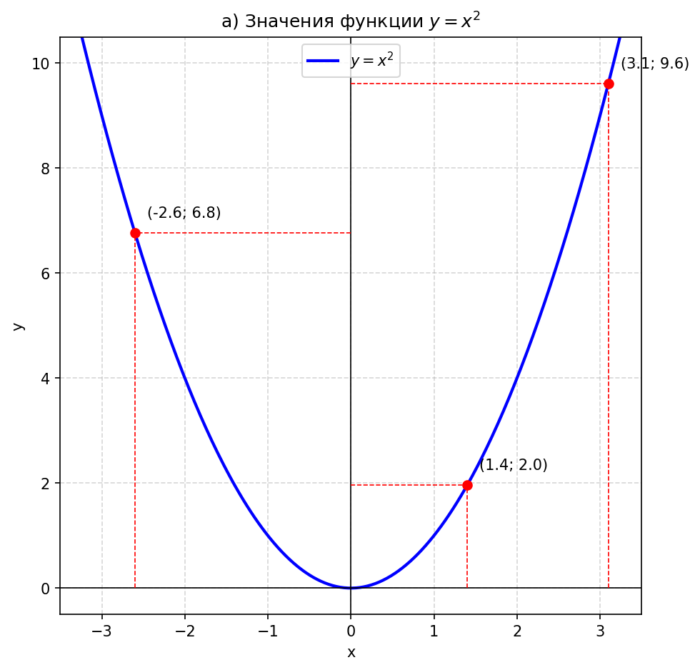 а) значение функции, соответствующее значению аргумента, равному 1,4; ?2,6; 3,1;