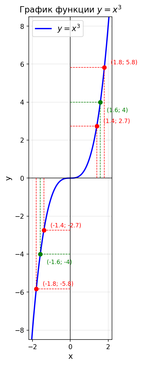 а) значение $y$, соответствующее $x = 1{,}4$; $-1{,}4$; $-1{,}8$; $1{,}8$;