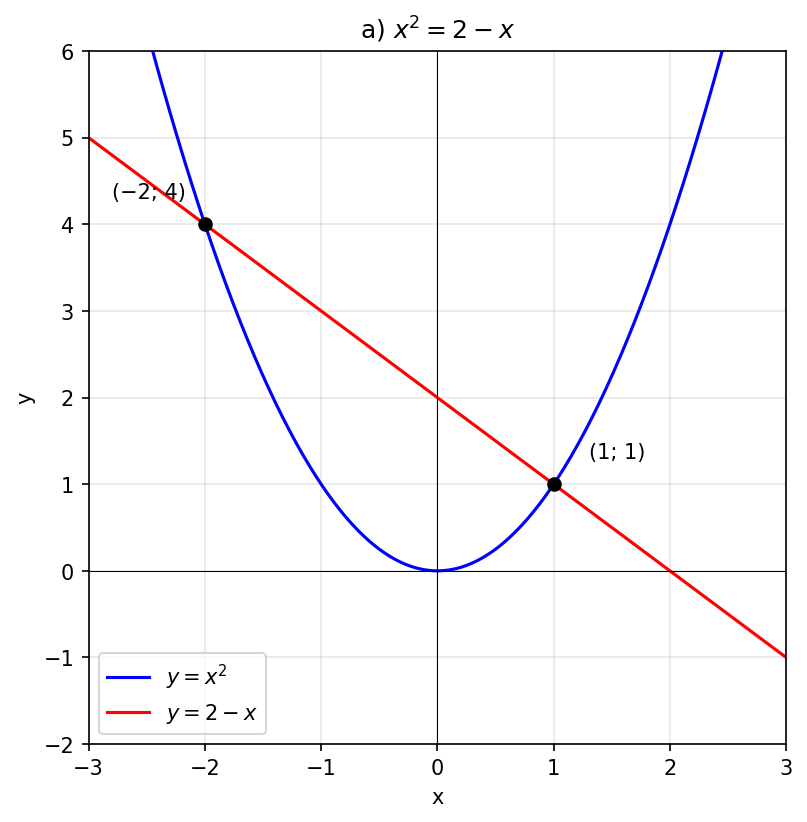 а) $x^2 = 2 - x$;