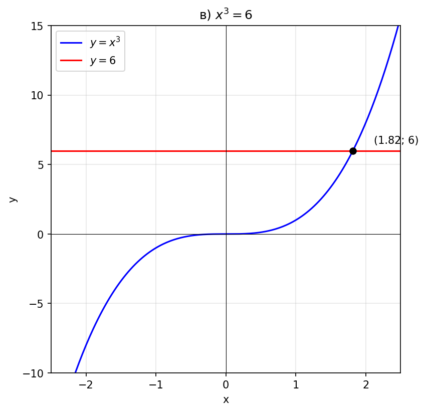 в) $x^3 = 6$;