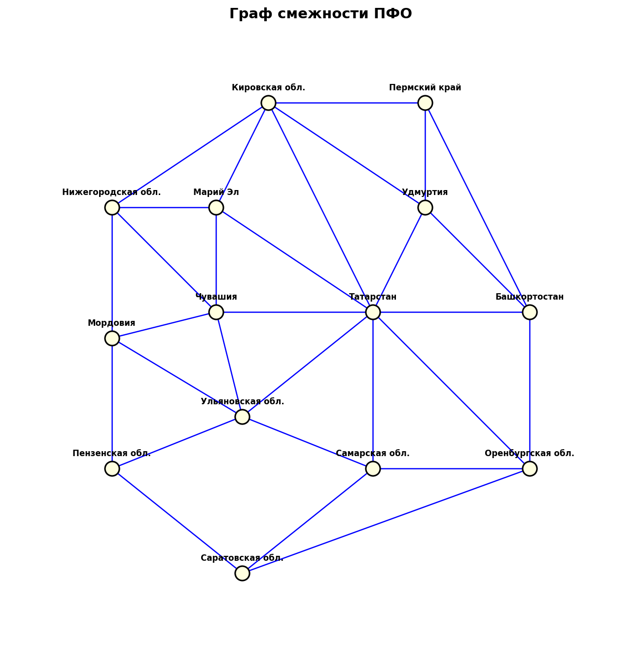 б) Граф смежности ПФО