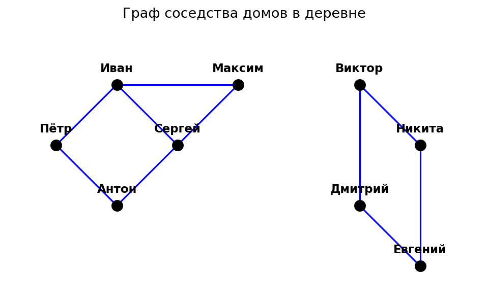 Таким образом, из Петра достижимы вершины: Пётр, Иван, Антон, Сергей, Максим — это одна связная компонента графа.