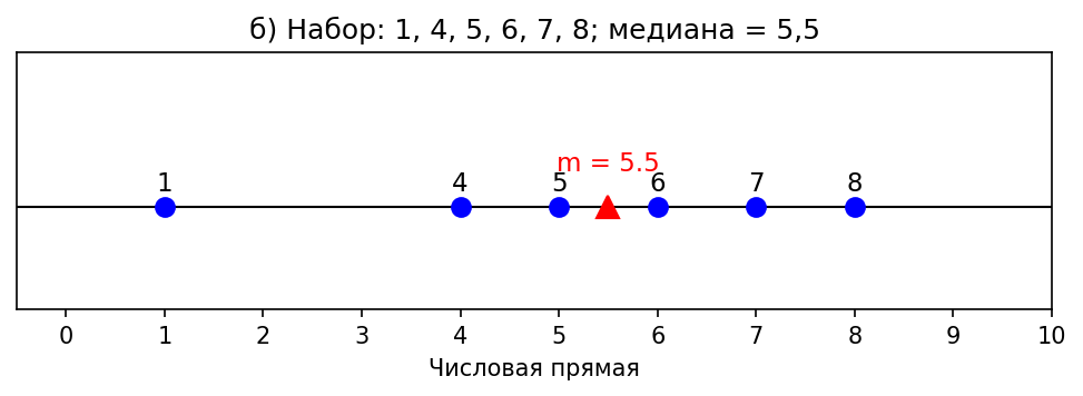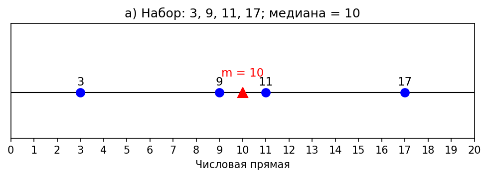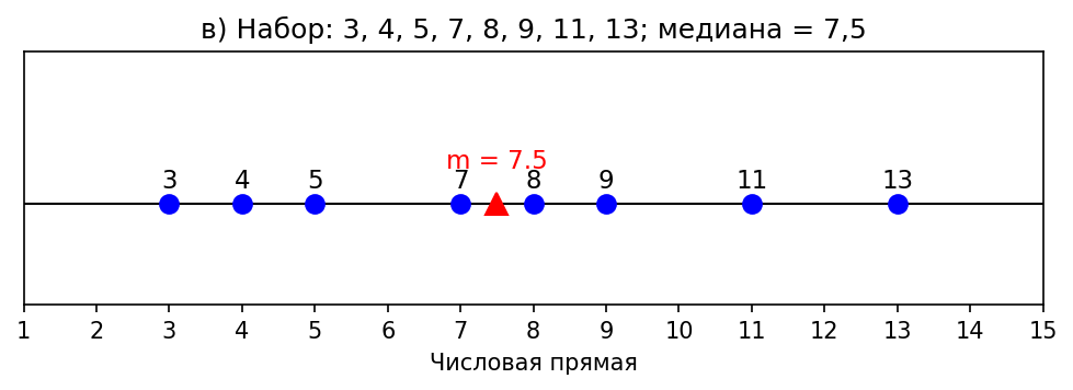 Условие: Отметьте числа наборов и их медианы на числовой прямой: