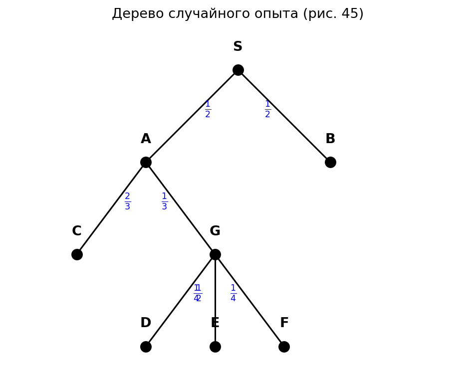 Условие: На рисунке 45 изображено дерево некоторого случайного опыта.