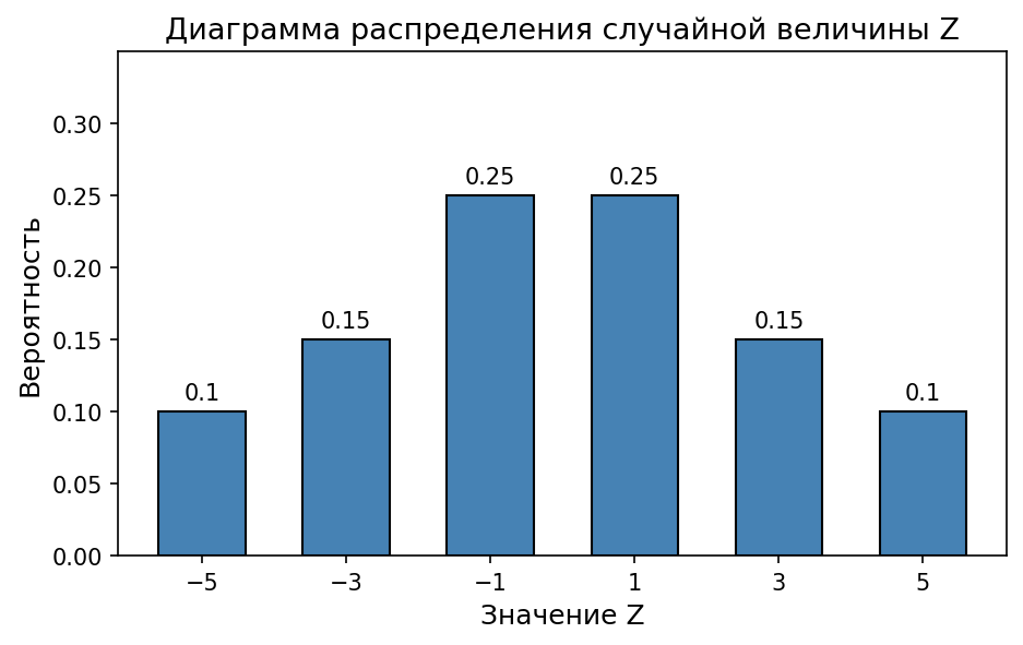Условие: По таблице распределения (табл. 12) постройте диаграмму распределения случайной величины $Z$.