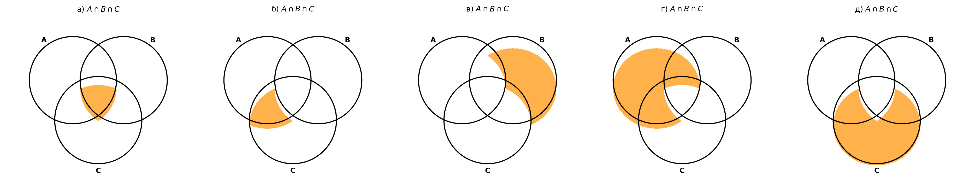 - а) Закрашена только центральная часть, общая для всех трёх кругов.