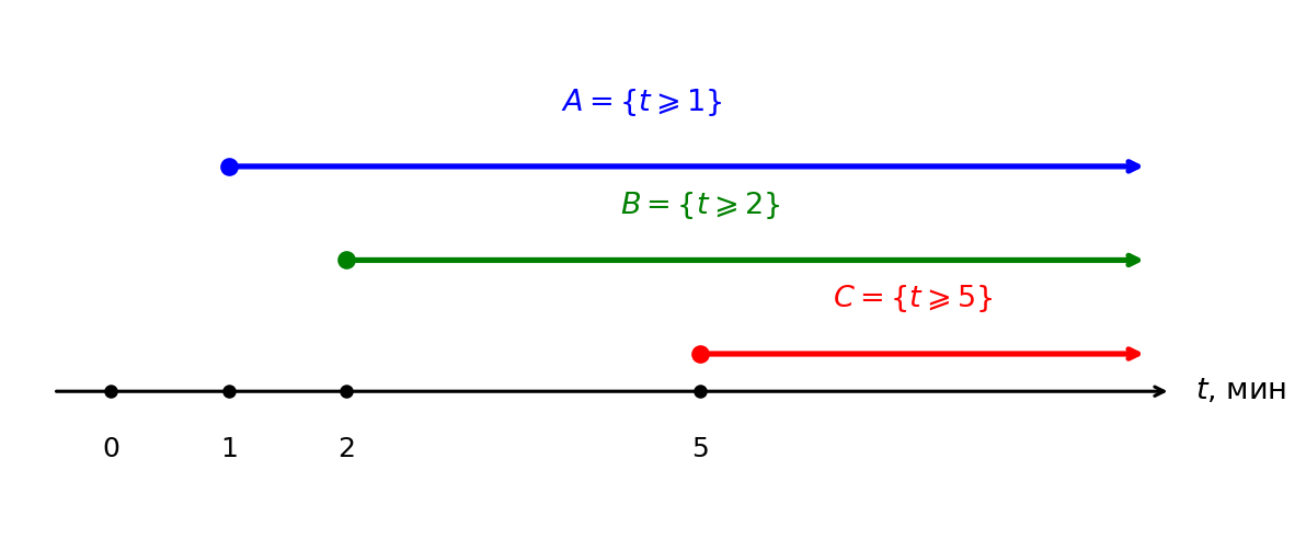 $C = $ {автобус придёт не меньше чем через 5 мин}.