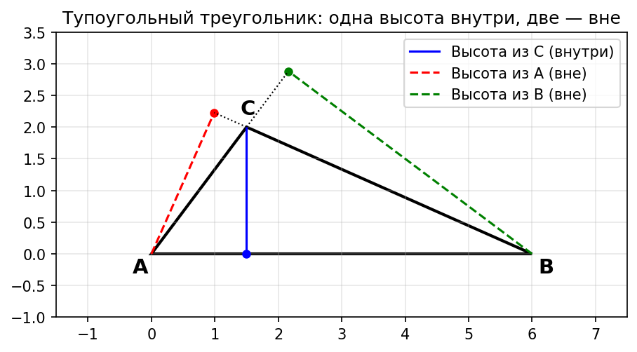 1) Может ли одна высота треугольника принадлежать ему, а две другие нет?