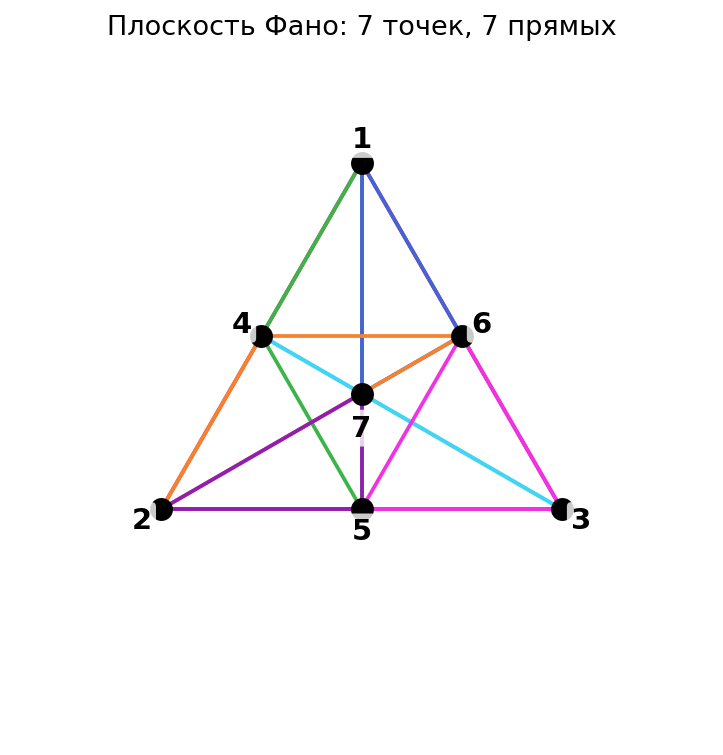 Рассмотрим конфигурацию Папуса упрощённо — но проще всего взять проективную плоскость порядка 2 (плоскость Фано): 7 точек и 7 прямых, где на каждой прямой ровно 3 точки и через каждую точку ровно 3 прямые.