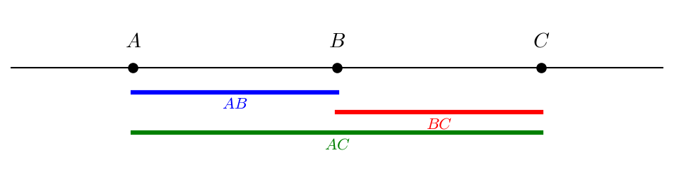 Проведём прямую и отметим на ней три точки A, B, C (в указанном порядке).