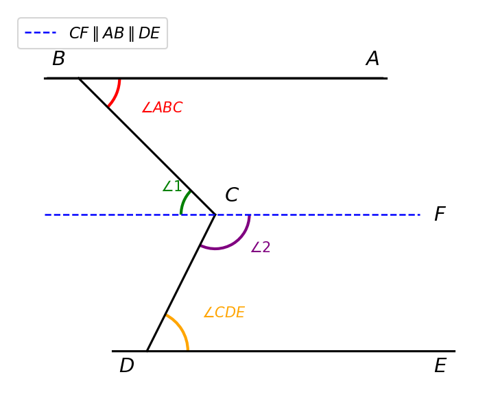 Проведём через точку C прямую CF так, чтобы CF ∥ AB. Поскольку AB ∥ DE, то и CF ∥ DE.