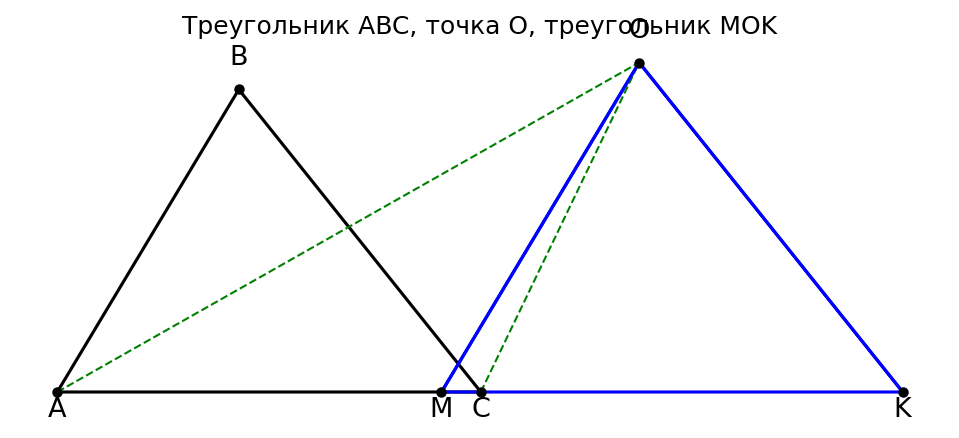 Значит, ∠ MOA = ∠ OAM, и треугольник AOM — равнобедренный, откуда: