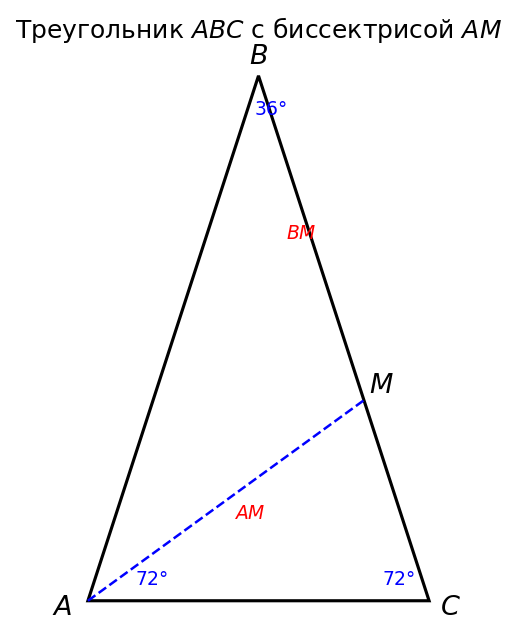 Так как ∠ AMC = ∠ C = 72°, треугольник AMC — равнобедренный, и AM = AC.