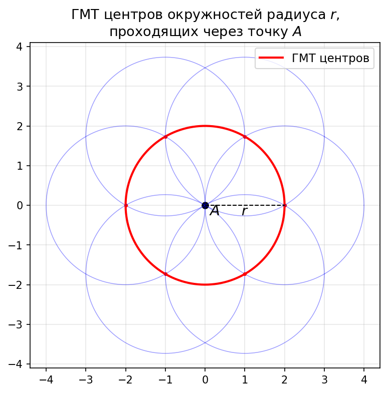 Ответ: искомое ГМТ — окружность с центром в данной точке и радиусом, равным данному.