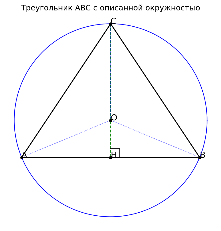 - OA = OB (радиусы описанной окружности).