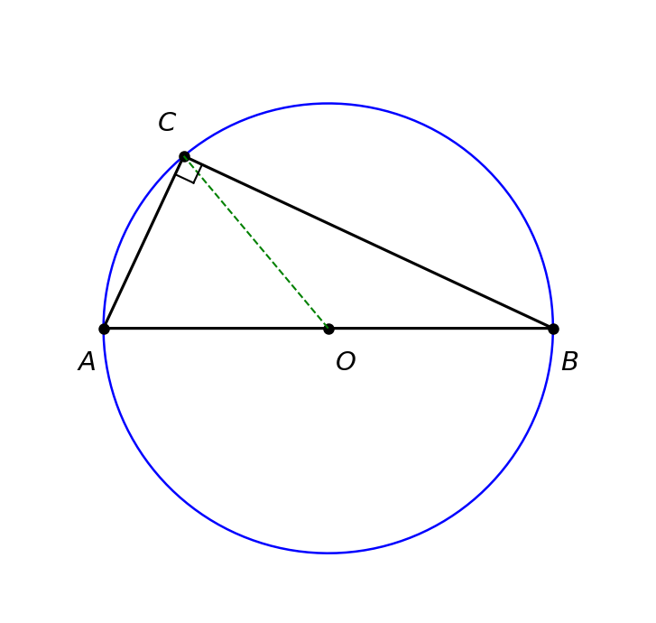 Следовательно, треугольник ABC — прямоугольный (с прямым углом при вершине C).